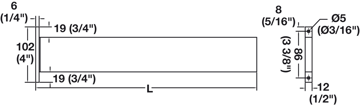 - Installation : 102 mm (4") flange for attachment to inside of cabinet face frame