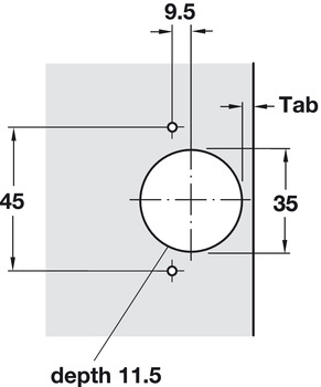 - Cup drilling Ø : 35.00 mm