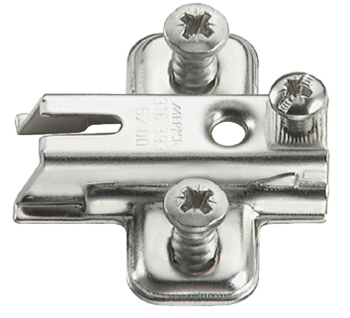 Hafele 323.84.704 Mounting Plate, Super Compact Cruciform, One Part Plate, for Grass Slide On System Hinges Height 0 mm, Pre-mounted Euro screw fixing