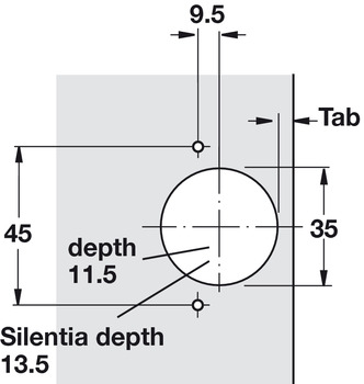 - Concealed hinge version : Half overlay mounting/twin mounting