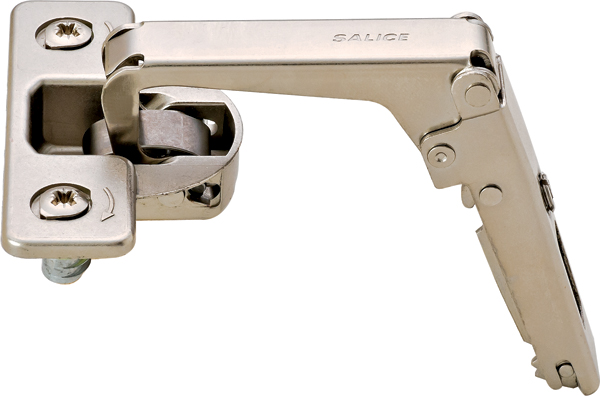 Hafele 329.19.620 Pie-Cut Corner Hinge, Salice, 70 degree Opening Angle, Self Close, Nickel-Plated Rapido mounting, model C27YA99