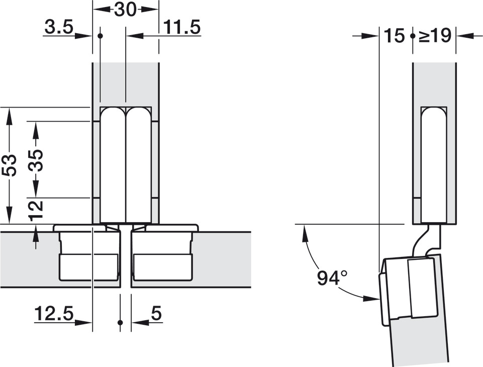 - Version : Door overlay 12.5 mm with fully integrated hinge pocket,Door overlay 10 mm with partially integrated hinge pocket