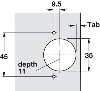 - Concealed hinge version : Half overlay mounting/twin mounting