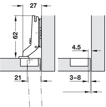 Category: Concealed Cup Hinge, For small doors and narrow frames