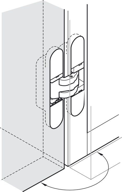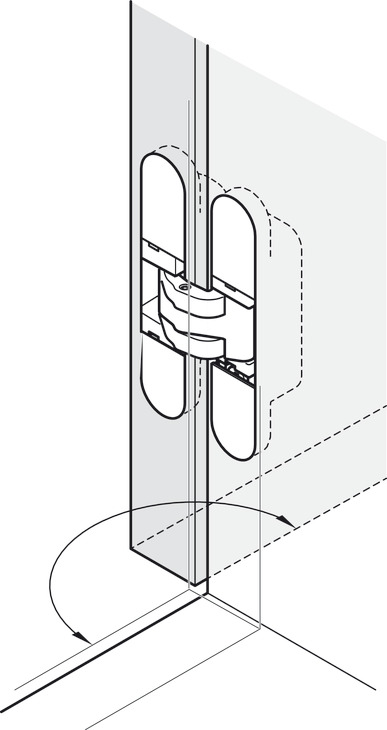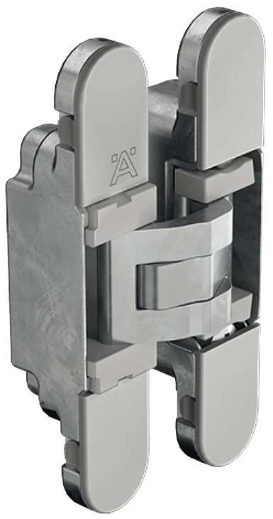 Product Title: Mortise Hinge, 180°, for Concealed Mounting, Only for hinged door applications, 3D adjustable, Hinge: matt chrome, cover cap: gray