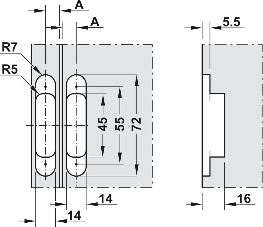 Factory settings, gap 1.5 mmAdjustment facility gap 0–3 mmHinge is only suitable for hinged door applications!Data Sheet