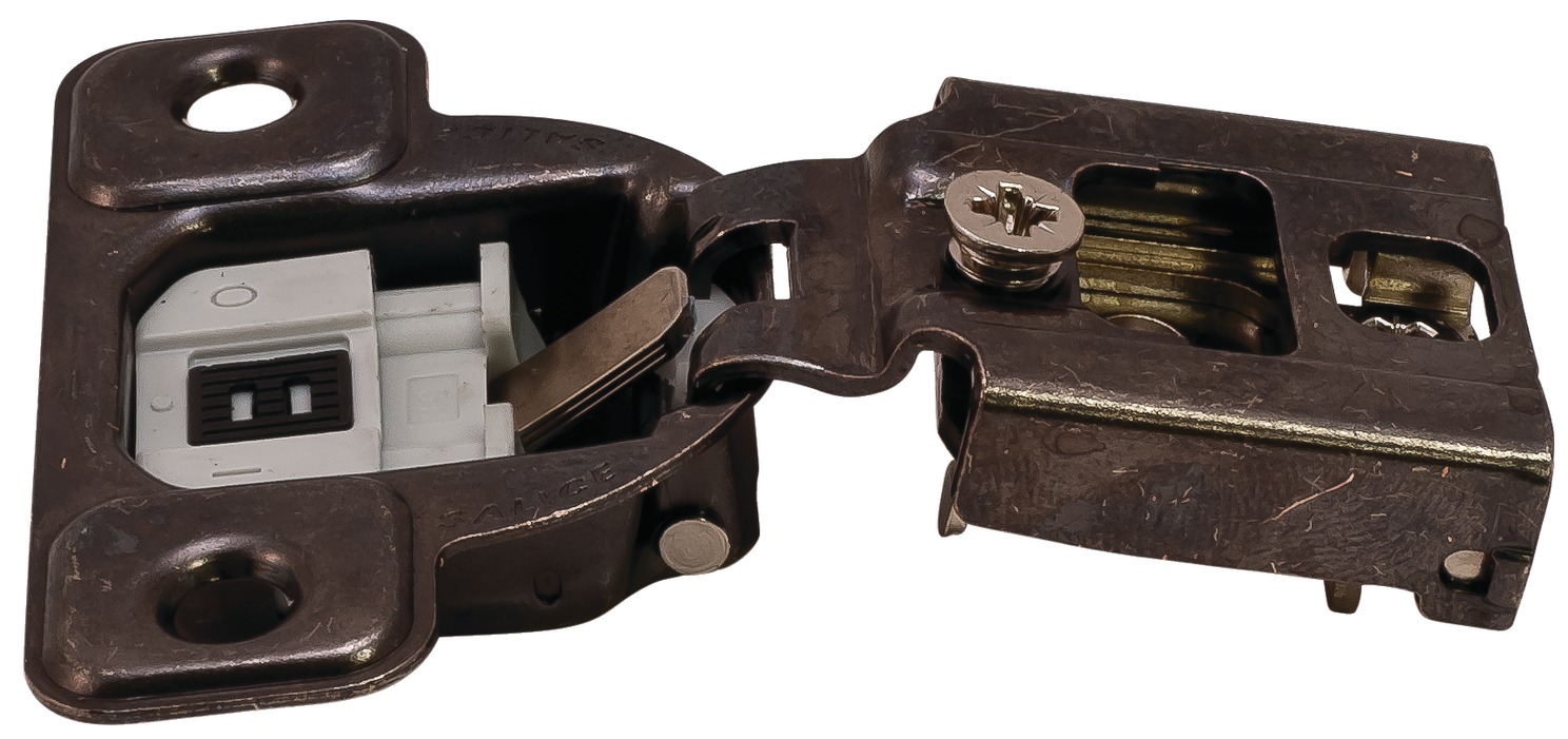 Product Title: Concealed Hinge, Salice Excentra 2-Cam, 106° Opening Angle, Soft Close, 1/2" Overlay, Titanium, screw-on, model CUP37D6