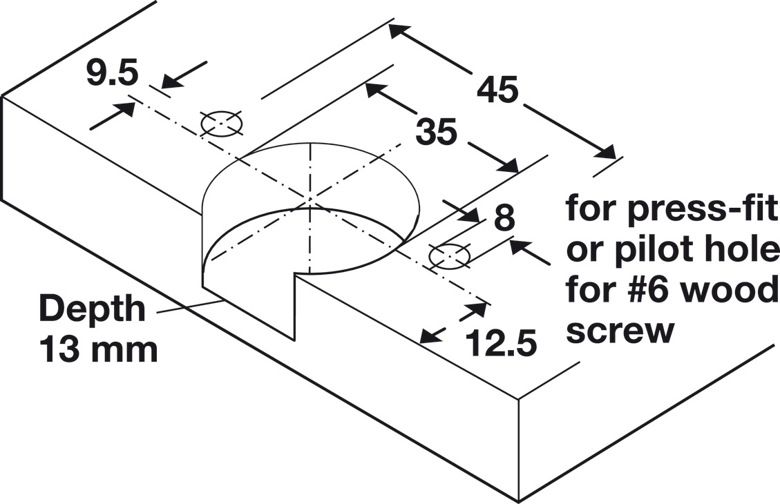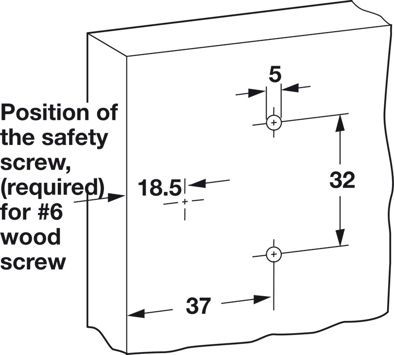- Attachment screws are not included. A #6 flat head wood screw is used for safety screw and hinge cup attachment.