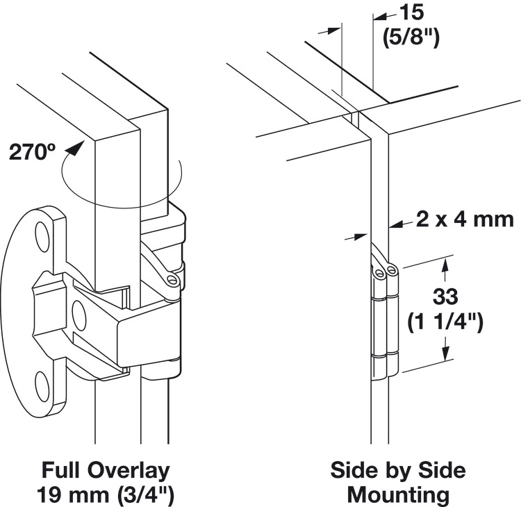- Area of application : For full overlay or inset doorsFor single cabinets and storage walls