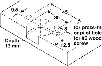 Optional Accessories:- Single Pivot Institutional Hinge Cup, Aximat 200, Grade 1, for 8 mm Holes, Dowel Mount
