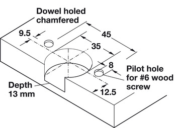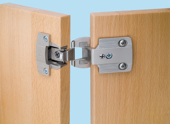 - Hinge arm component available with pre-installed expanding dowels for 5 mm holes, or for screw attachment