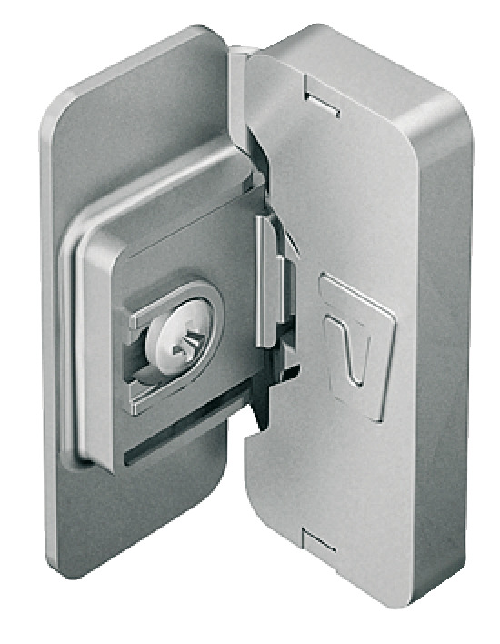 Category: Glass Door Hinge, Grade 1, Non-bore, 220°, For inset doors, for all-glass constructions, for glue fixing (UV glass adhesive bonds)
