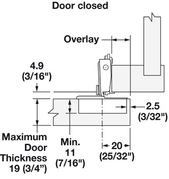 Hafele 348.90.024 Concealed Face Frame Hinge, Grass TEC Wrap Around, 108 degree Opening Angle, Soft-Close 1" Overlay, Press-fit; Model 02745A-15