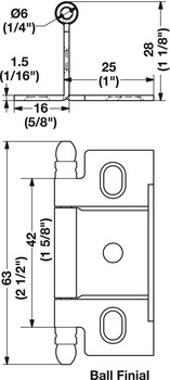 Category: Decorative Butt Hinge, Full Wrap, Non-Mortise, Ball Finial, For inset face frame doors