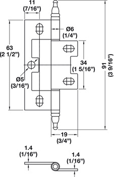Category: Decorative Butt Hinge, Non-Mortise, Minaret Finial, For inset face frame doors