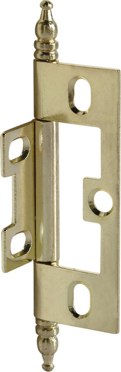 Product Title: Decorative Butt Hinge, Non-Mortise, Minaret Finial, For inset face frame doors, Brass-plated