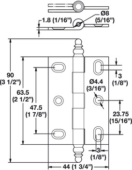 - Version : Mortised on cabinet and/or door sideMinaret finial