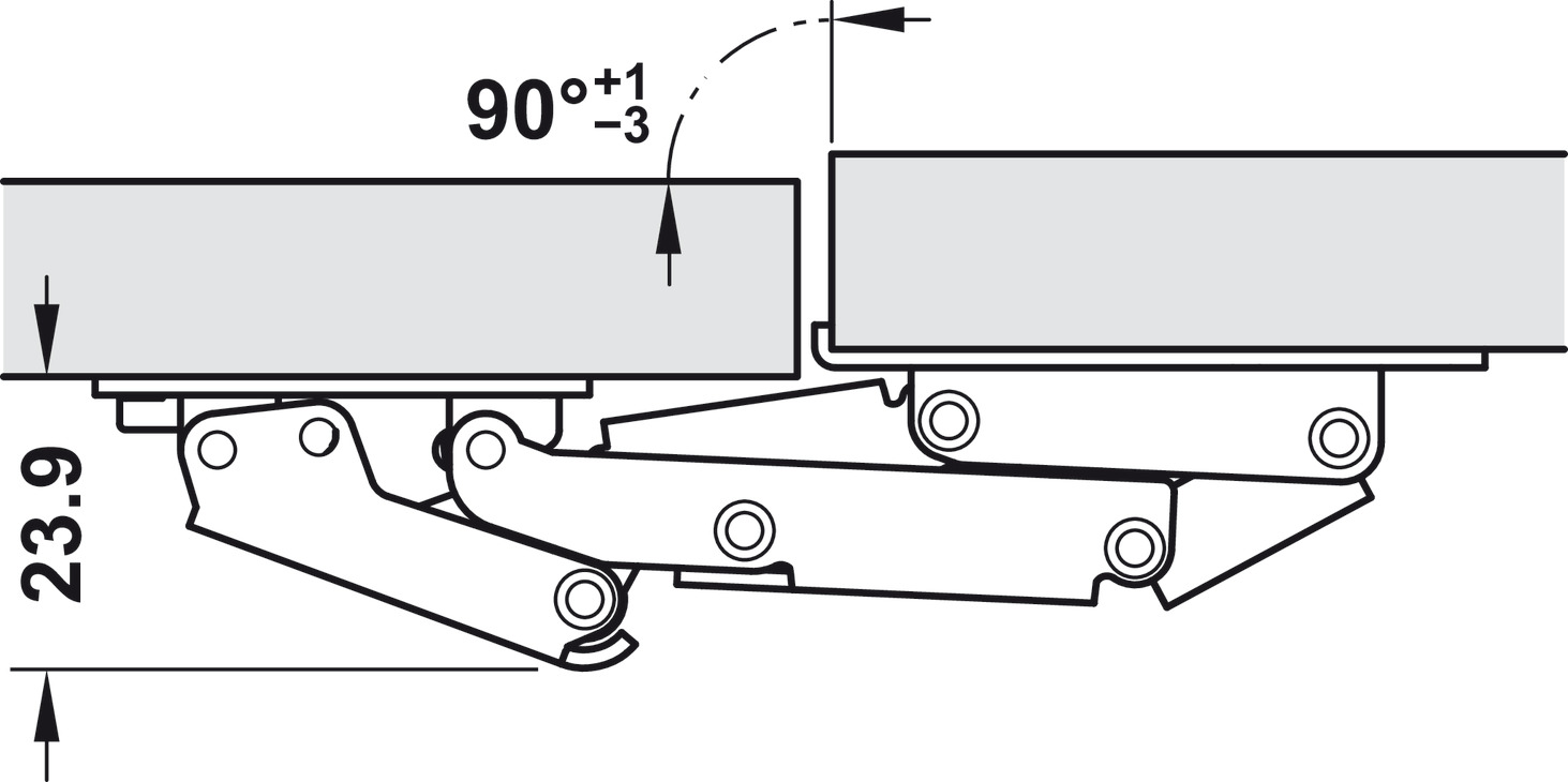 Product Title: Stay flap hinge, CH 300, for flaps up to 2.1 kg, for overlay mounting, with soft closing mechanism, for screw fixing