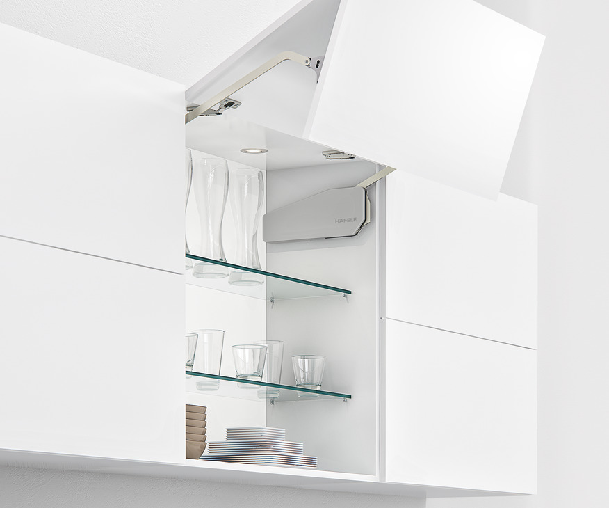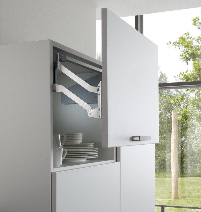 Hafele Parallel Lift-Up Front Fitting, Free Up, For one-piece flaps made of wood, glass or with aluminum frame, Cabinet height: 380-500 mm, flap weight: 2.0-3.8 kg, Item# 372.33.633, 37233633, 372-33-633