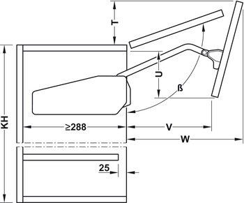Concealed hinges for mounting the door to the cabinet, connecting hinges and adapters for narrow aluminum frames (if applicable) must be ordered separately. The specified models apply to common door heights and weights. Shorter front panels with higher door weights and taller front panels with lower door weights can also be implemented in individual cases.Data Sheet