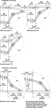 - Adjusting the arms (overshear) turns the lid stay into a flap stay