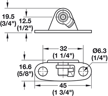 Hafele 373.66.681 DUO/MAXI Door Bracket, for Doors Made of Wood or with Aluminum Frame For frames 45 mm (1 3/4") or wider, Nickel plated, for wood screw mounting