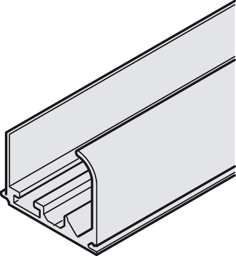 Product Title: Single running track, Top, For screw fixing or groove mounting, Pre-drilled, for Häfele Slido D-Line31, silver coloured anodized, length: 2,500 mm, aluminium