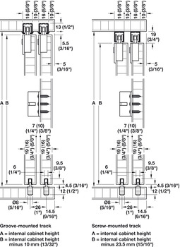 Hafele 402.33.014 Sliding Door Hardware, Slido Classic 12 IF C, set For small wooden sliding doors, for door weights up to 12 kg, With single soft closing on each door