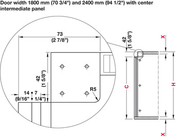 - 1 sliding track for center intermediate panel (only for door widths 1,800 (70 3/4β) and 2,400 mm (94 1/2β))
