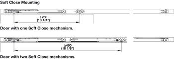 - Soft closing at one side is possible from a centre distance of min. 260 mm, both sides from 460 mm. Please order soft closing mechanism set separately.