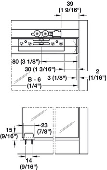 Hafele 405.02.409 Sliding Door Hardware, EKU Clipo 36 G Inslide Set & Regal A 25 GR 40/22 Foreslide For 1 glass door, max. door weight: 79 lbs. (36 kg)