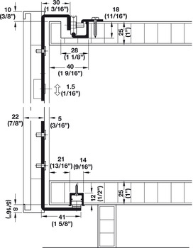 - Area of application : For door weights up to 25 kg, for sliding doors with aluminum frame 40/22