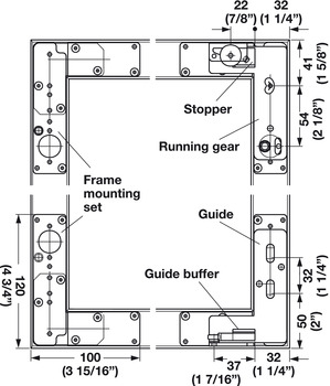 Hafele 405.55.111 Sliding Door Hardware, EKU Regal A 25 GR, 40/20 Forslide, Set For one aluminum frame sliding door, for door weights up to 55 lbs for door heights up to 86 5/8", For 1 door
