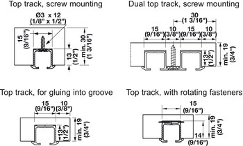 Double running track, top, for screw fixing (choose one):for Hawa Clipo, Aluminum, 8' 2 7/16"