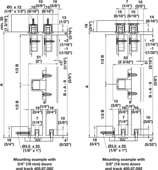 Category: Sliding Door Hardware, Hawa Clipo 16 H Mixslide, set, For thin cabinet tops, for wooden sliding doors, for door weights up to 16 kg, for door heights up to 1,400 mm, for 2 doors