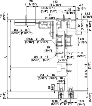 - Installation : Guide for press fitting into a drill hole, Running gear for screw fixing, Backlash-free spring-loaded floor guide for press fixing