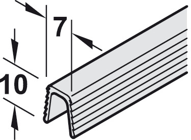 Category: Single Guide Track, Bottom, with harpoon-type flange, For press fitting and glue fixing into groove, plastic anthracite, length: 2,500 mm