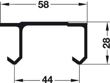 Hafele 407.11.013 Double Upper Track, For Hangar Infront Aluminum; Pre-drilled for Screw Mounting, Double; 11' 5 13/16"