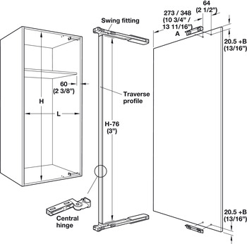 Category: Central Hinge, for Swingfront 20 FB, For stabilizing the connecting bar with high doors, Silver colored finish