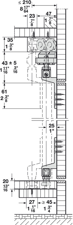 Hafele 407.74.230 HAWA-Planfront Fitting Set, right hand, 150cm- Hardware > Building Materials > Door Hardware