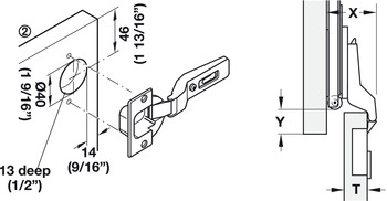 - (2) 329.04.635 – Duomatic 94º, 40 mm cup hinge, free swinging