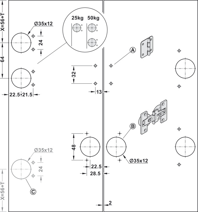 - Note on door weight : 12.5/25 kg (25/50 kg per pair of doors)