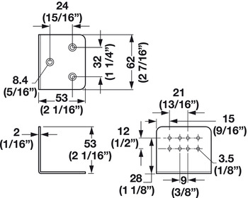Category: Bottom Mount Bracket, for 3135EC, C3132EC and C3132SC, Accuride, 53 x 62 mm, model 4180-0569-XE