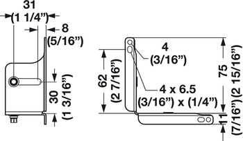 Hafele 420.01.020 Inset Face Frame Bracket, for 3135EC, C3132EC and C3132SC Accuride, 75 x 11 mm, model 4180-0604-XE
