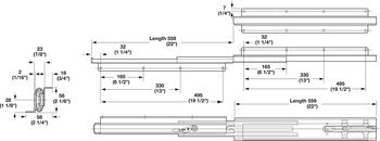 Category: Accuride 3600-201 Top/Bottom Mounted Slide, Full Extension; 175 lbs Weight Capacity, 22"