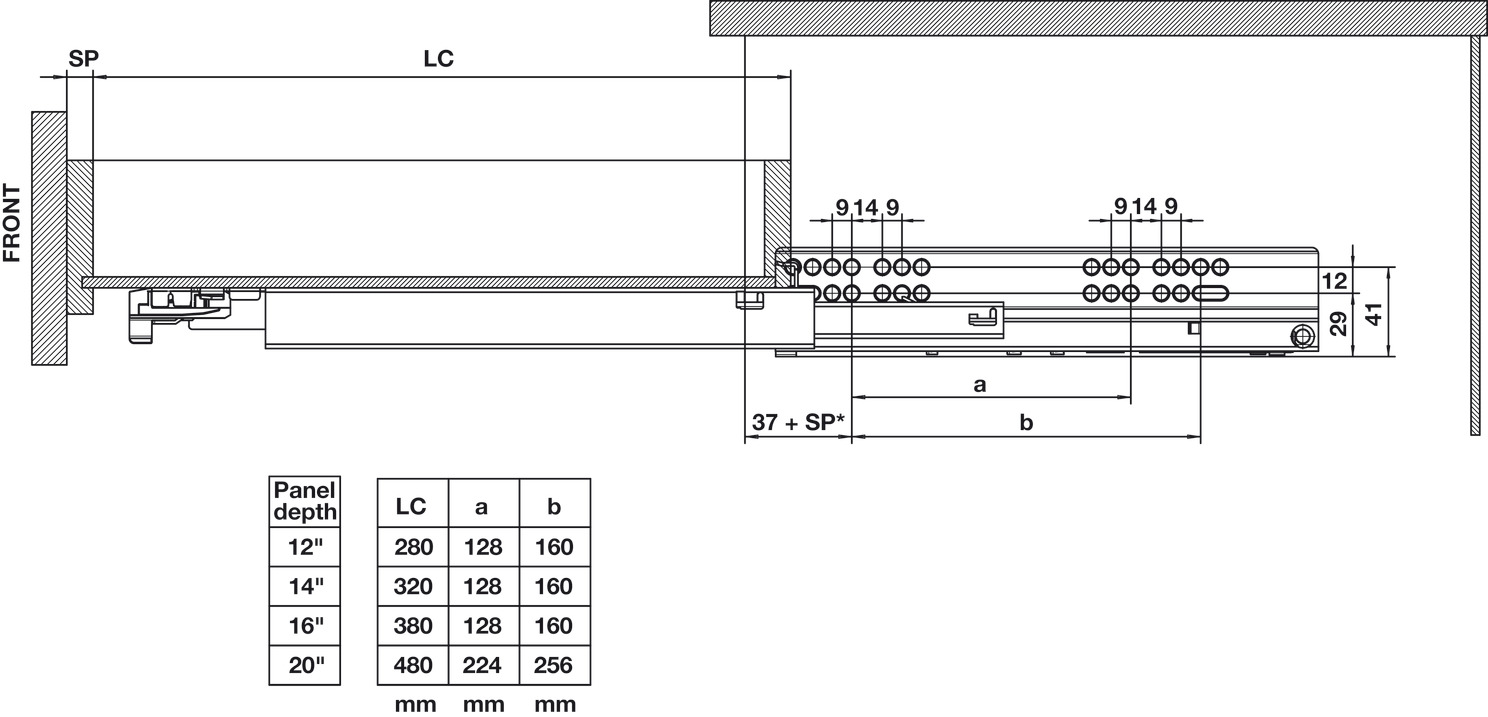 - 3 unique lengths for 12", 14", 16", 20" depth panels