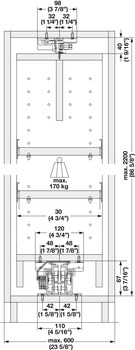 Product Title: Hawa Forte 170/340 Top/Bottom Mounted Cabinet Slide, Partial Extension, 374 lbs Weight Capacity, 42 1/2" installed length, 40 7/8" extension length