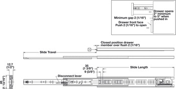 - Propels drawers open approximately 2 – 5" (51 - 27 mm) from the closed position