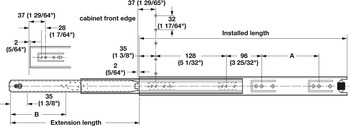 Hafele 422.04.965 Accuride 3832 Telescopic Side Mounted Cam Adjust Slide, Full Extension, 100 lbs Weight Capacity FP pack, zinc, 26" installed and extension length