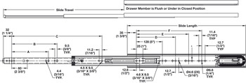 - Outer member hole pattern matches models 3832/3834. The same hole configuration and fastener type are used whether slides are going into a 1/2†or 3/4†side space.